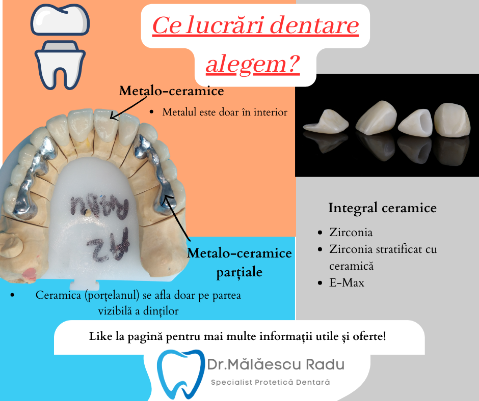 Zirconiul și ceramică EMAX nu conțin metal, fiind mai estetice, mai sănătoase pentru gingii și necesită o șlefuire mai redusă a dintelui.