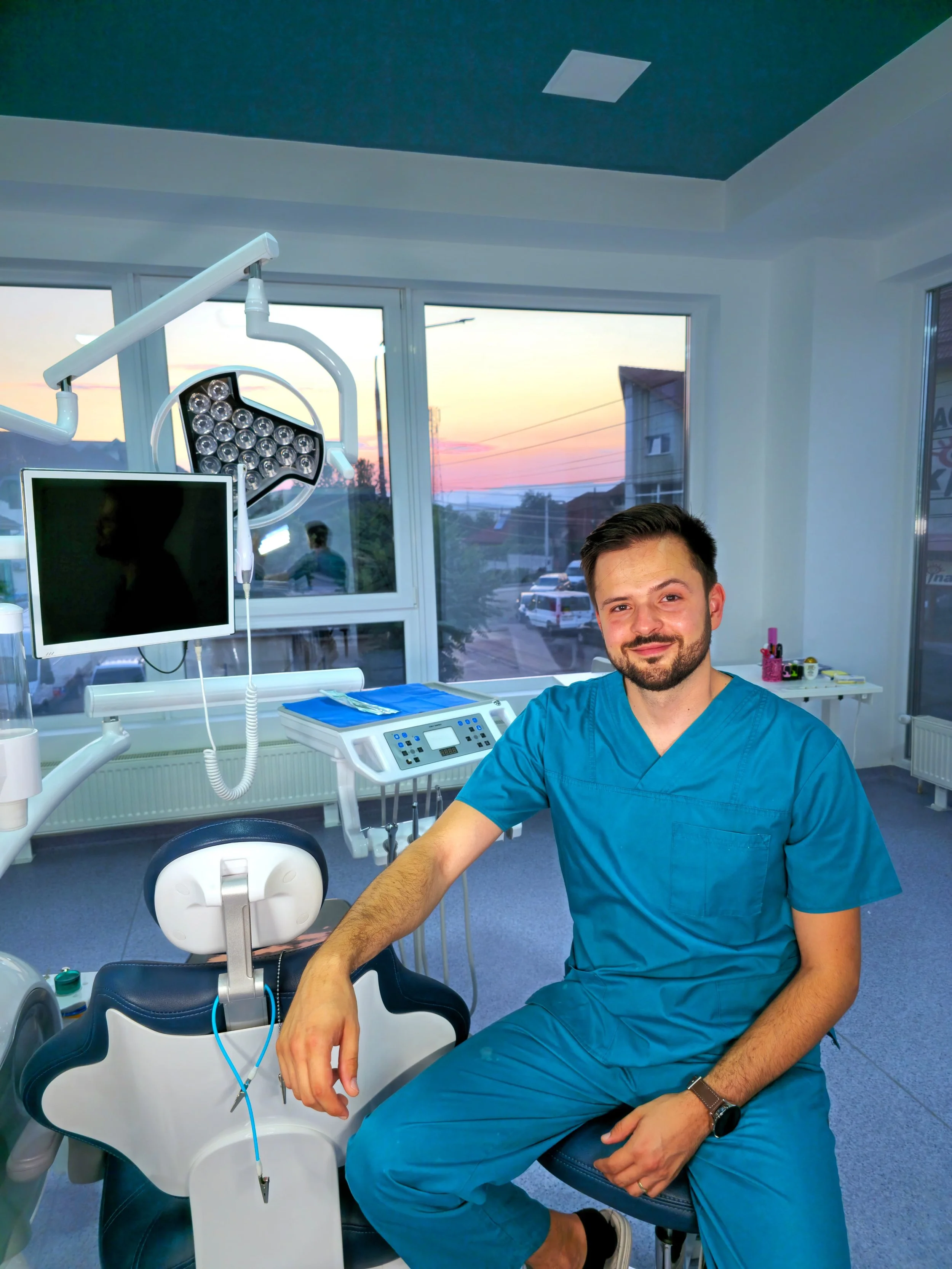 Tratamente efectuate : 5x alungire coronară, 5x pivot fibră de sticlă, 6x tratamente de canal, 9 coroane zirconiu